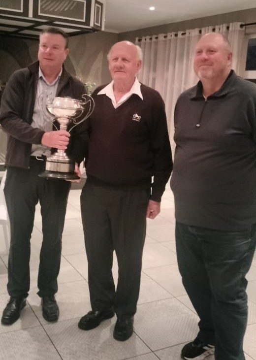 Featured: Premier division winner is Zimbali and the trophy was collected by Steve Phytides (centre), from KZNGU President, Brian Olsen (left), and on the right, KZNGU League Convenor, Gary Welsh.